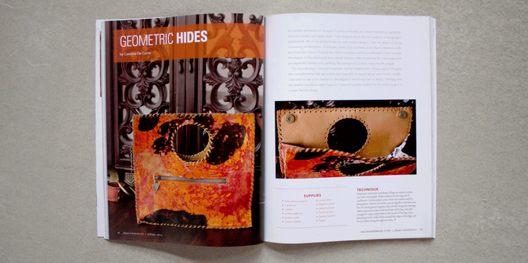 Compartimos con Uds. imágenes de la nota - Geometric Hides - que la revista Norteamericana ‪#‎HauteHandbags‬ nos realizó hace un tiempito. Stampington & Company