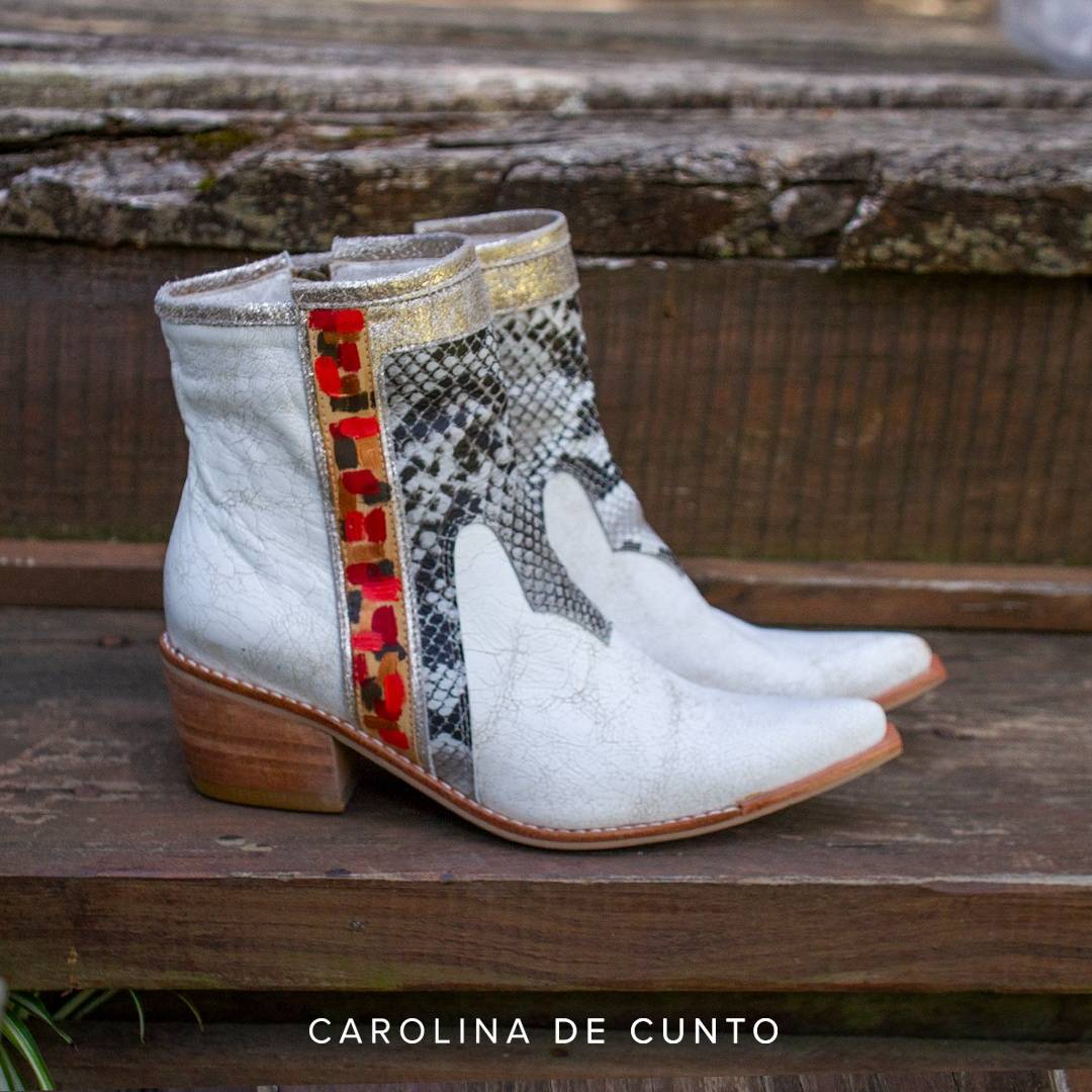 Botas realizadas cuidando cada detalle, utilizando cueros exclusivos y únicos pintados a mano por Carolina De Cunto.