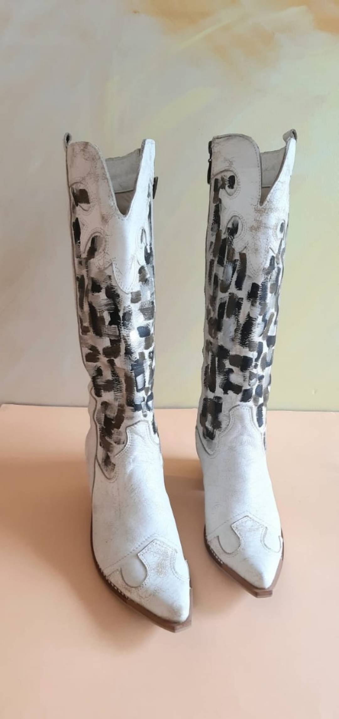 Botas realizadas cuidando cada detalle, utilizando cueros exclusivos y únicos pintados a mano por Carolina De Cunto.