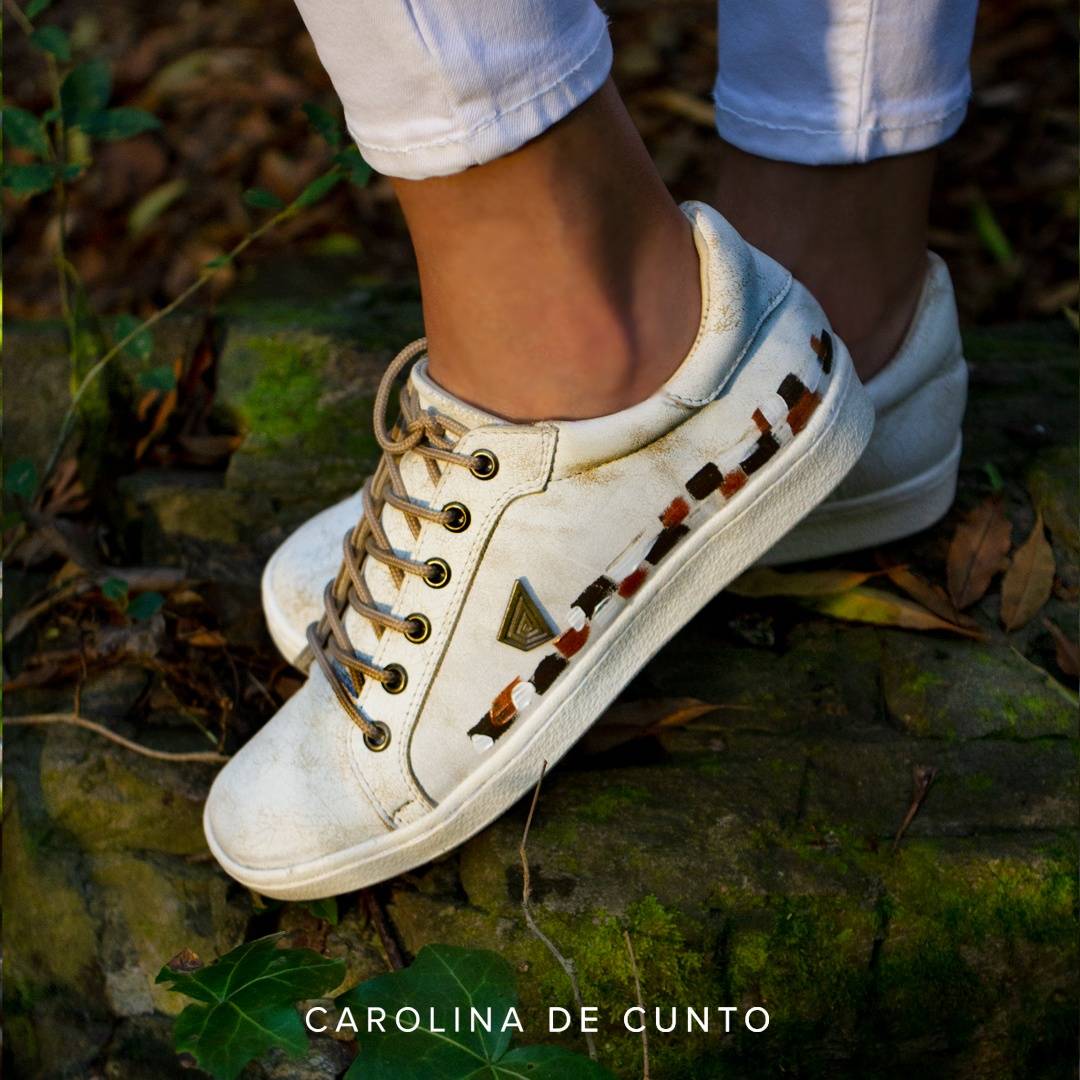 Championes de cuero color natural. Con detalle de arte pintado a mano.