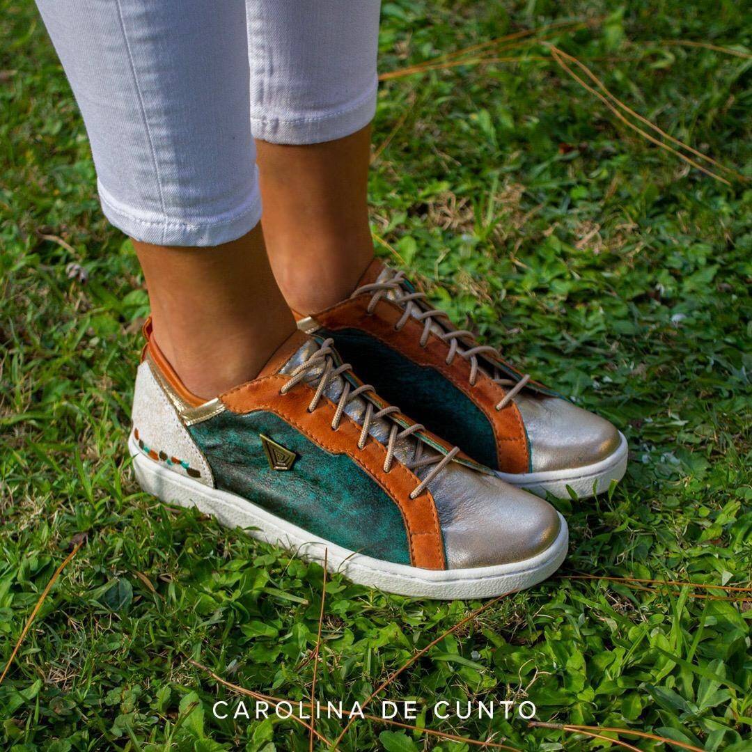 Championes de cuero en varias combinaciones de colores, y texturas. Con detalle de arte pintado a mano.