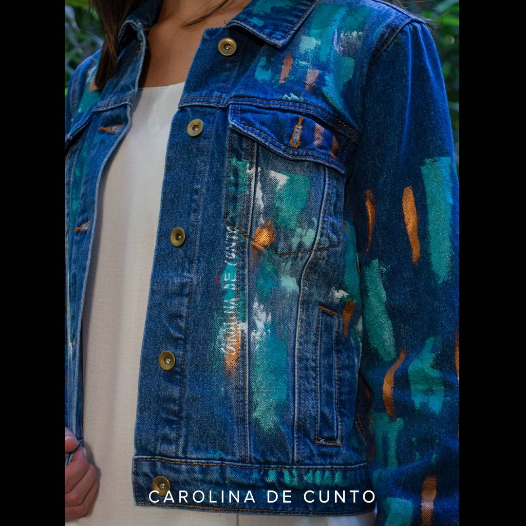 Arte para lucir. Campera de jeans con arte hecho a mano por Carolina De Cunto. Jovialidad y estilo en una prenda.