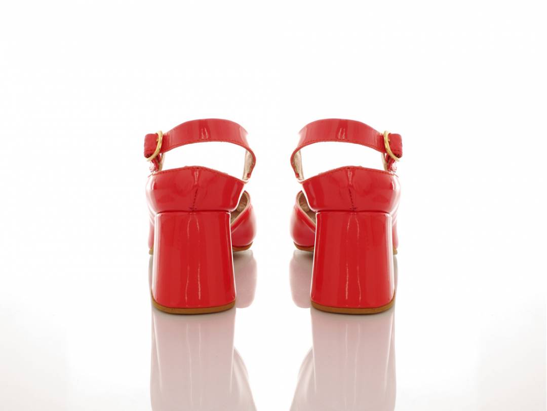 Color: Cuero-Charol color coral. Detalle de aplique en forma de corazón en color blanco .