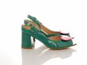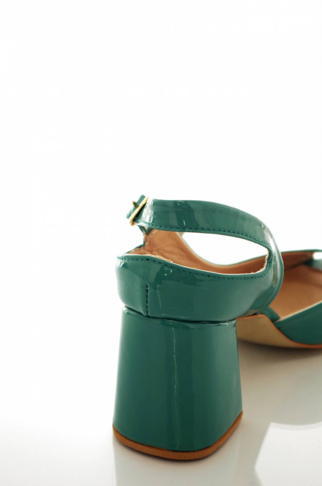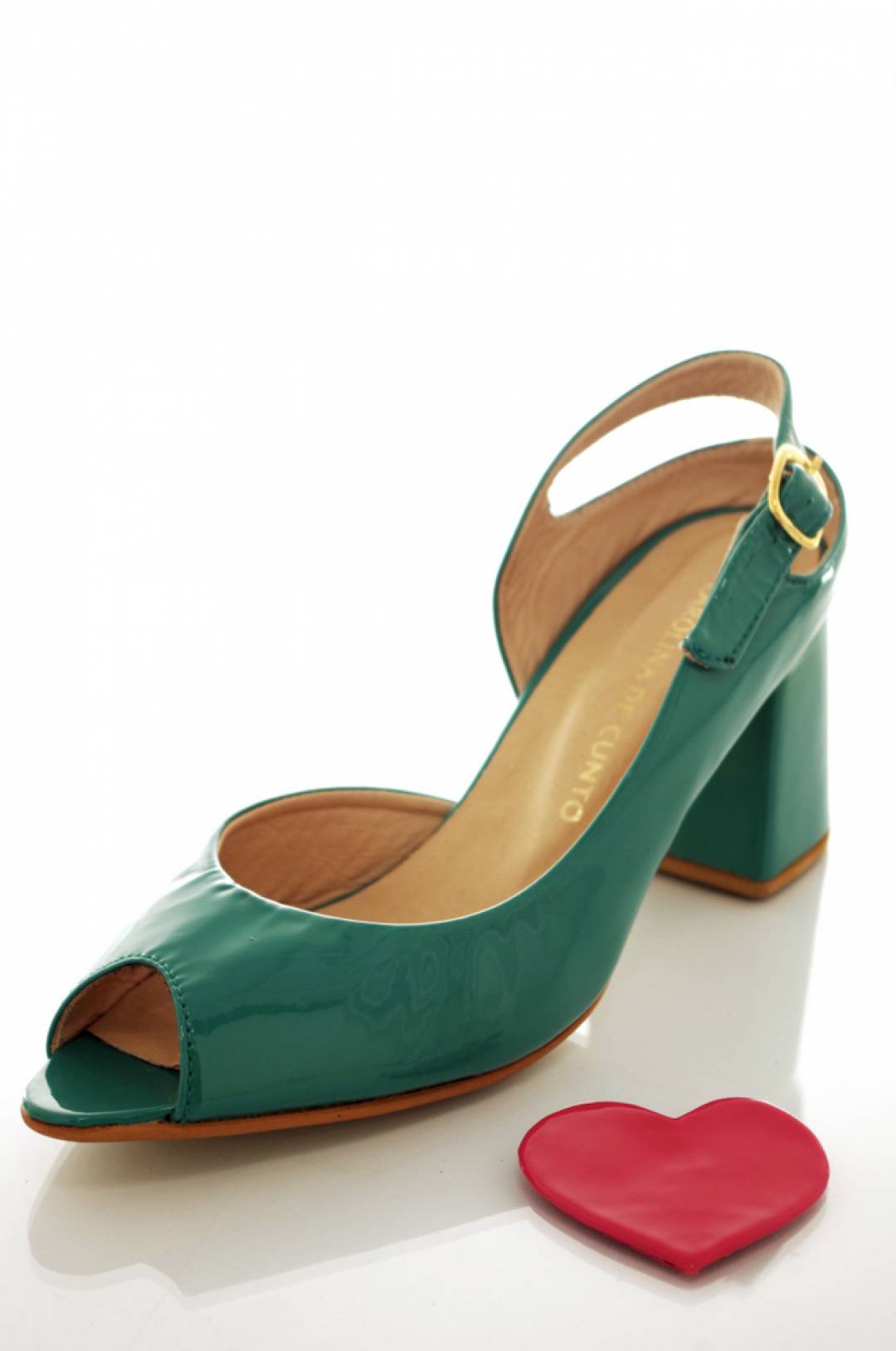 Color: Cuero-Charol color verde turquesa. Detalle de aplique removible en forma de corazón en color fucsia.