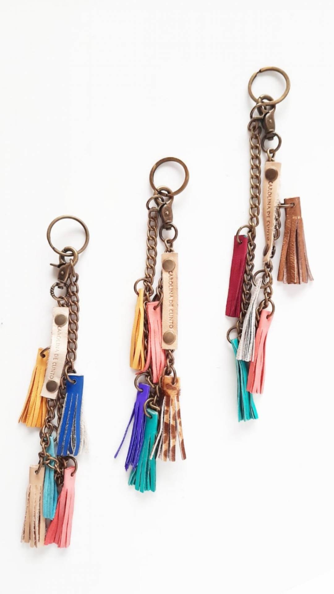 Accesorio - llavero a la moda. 5 flecos en colores variados que podés utilizar en tu cartera, mochila, de llaveros ó