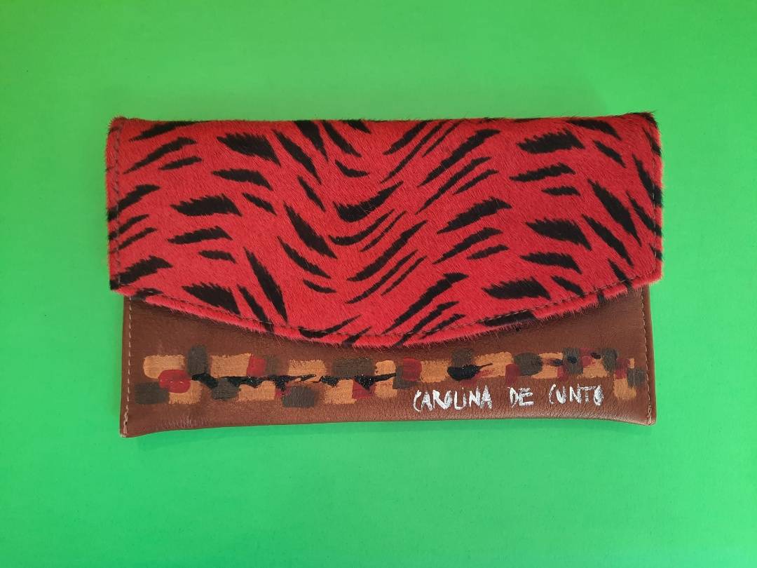 - Color: Cuero marrón con solapa cuero diseño víbora, detalle de arte hecho a mano por Carolina .