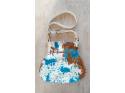 Elegancia y belleza. Cartera con contraste de colores. Tiene correa ajustable para usar al hombro o como bandolera. Su interior esta forrado de tela imprimé diseñada por Carolina. Cartera-bandolera hecha a mano con cueros uruguayos seleccionados de calidad superior.
