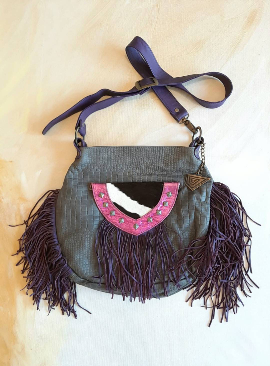 Elegancia y diseño plasmados en esta bandolera combinada.