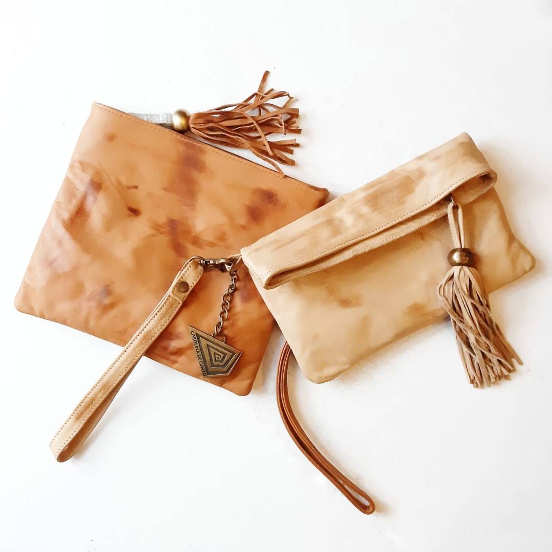 Elegante riñonera/sobre. Detalle de arte pintado a mano por Carolina.