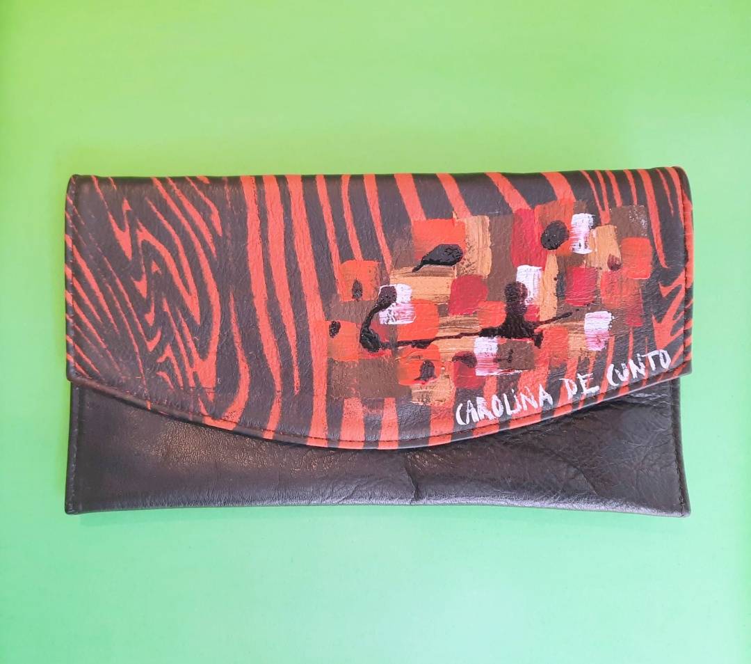 Elegante riñonera/sobre. Detalle de arte pintado a mano por Carolina.