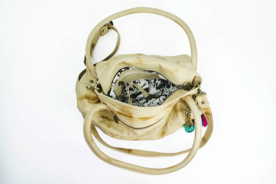 Simplicidad, practicidad y belleza. Cartera de suave cuero de formas redondeadas con fuelle y doblez en la parte superior lo que le permite expandir el espacio.Tiene doble uso, mangos cortos para usar al hombro y correa ajustable para uso como bandolera. Su interior esta forrado de tela imprimé diseñada por Carolina. Viene con una borla decorativa con flores de cuero de colores. Cartera-bandolera hecha a mano con cueros uruguayos seleccionados de calidad superior. ![]()