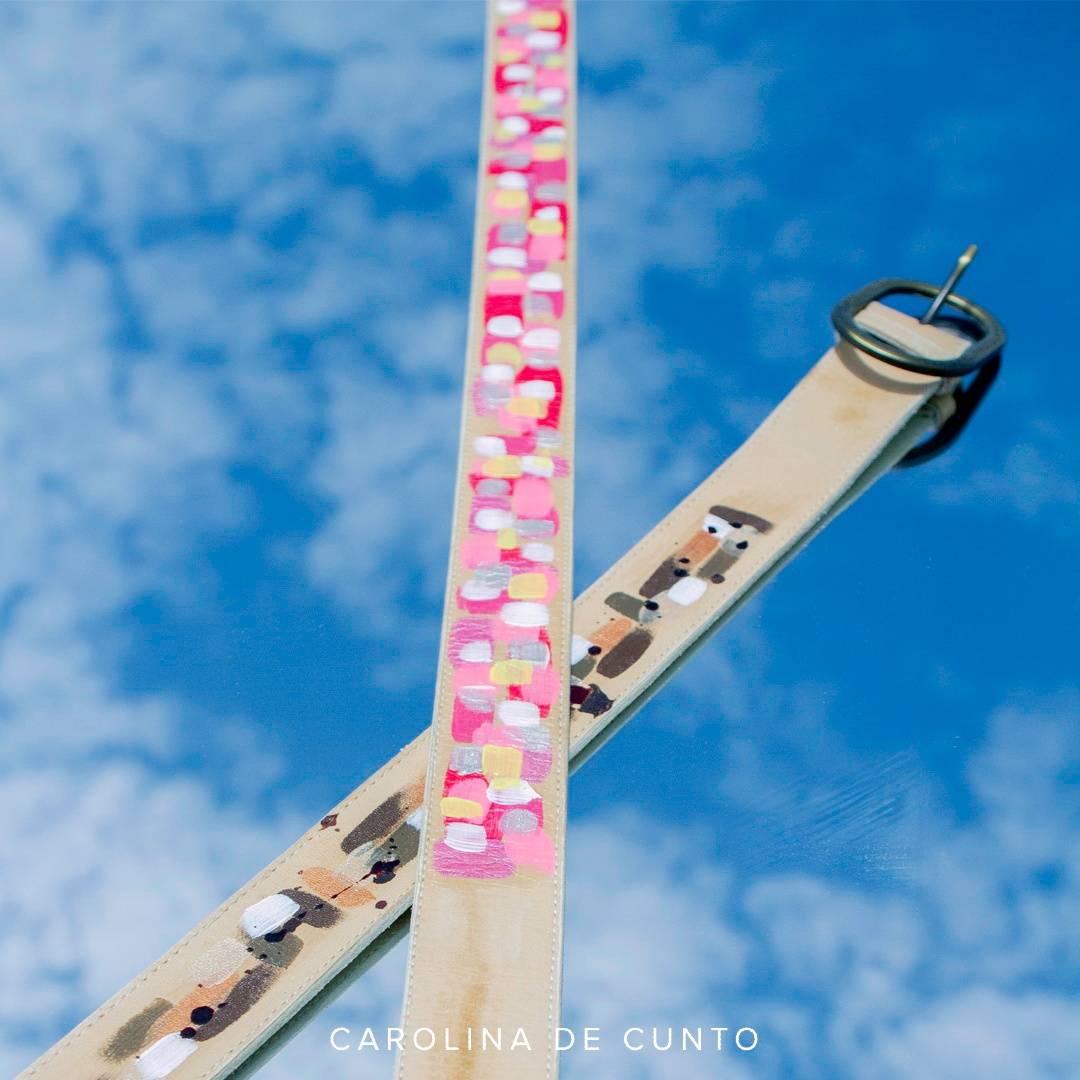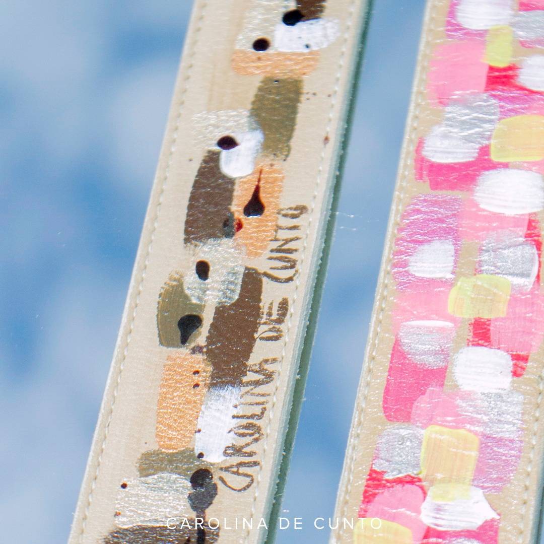 Cuero vacuno liso color marfil, detalle de arte pintado a mano por Carolina De Cunto.