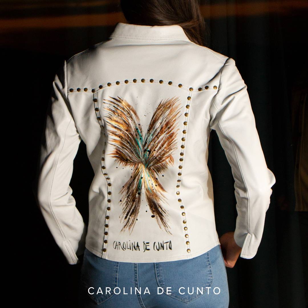 Arte para lucir. Elegante camisa de cuero, pintada a mano por Carolina de Cunto.. Hecha a mano con cueros uruguayos seleccionados de calidad superior.