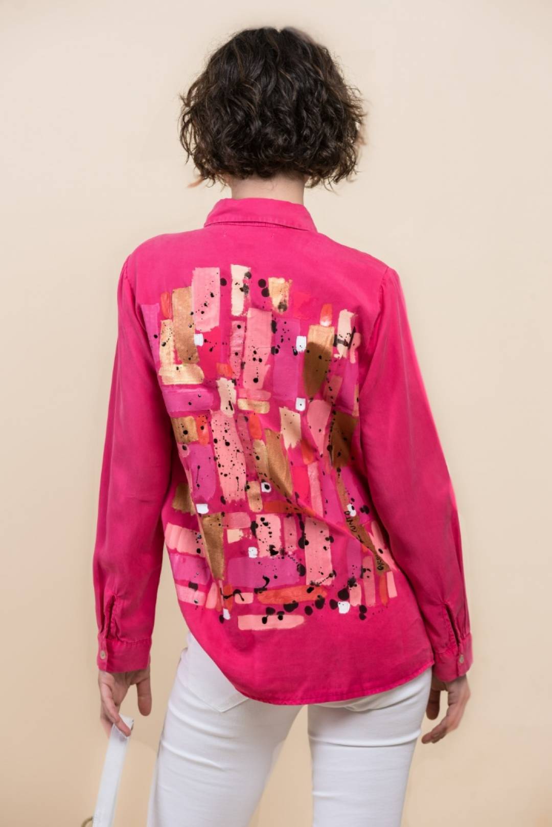 Arte para lucir. Camisa con arte hecho a mano por Carolina De Cunto. Jovialidad y estilo en una prenda.