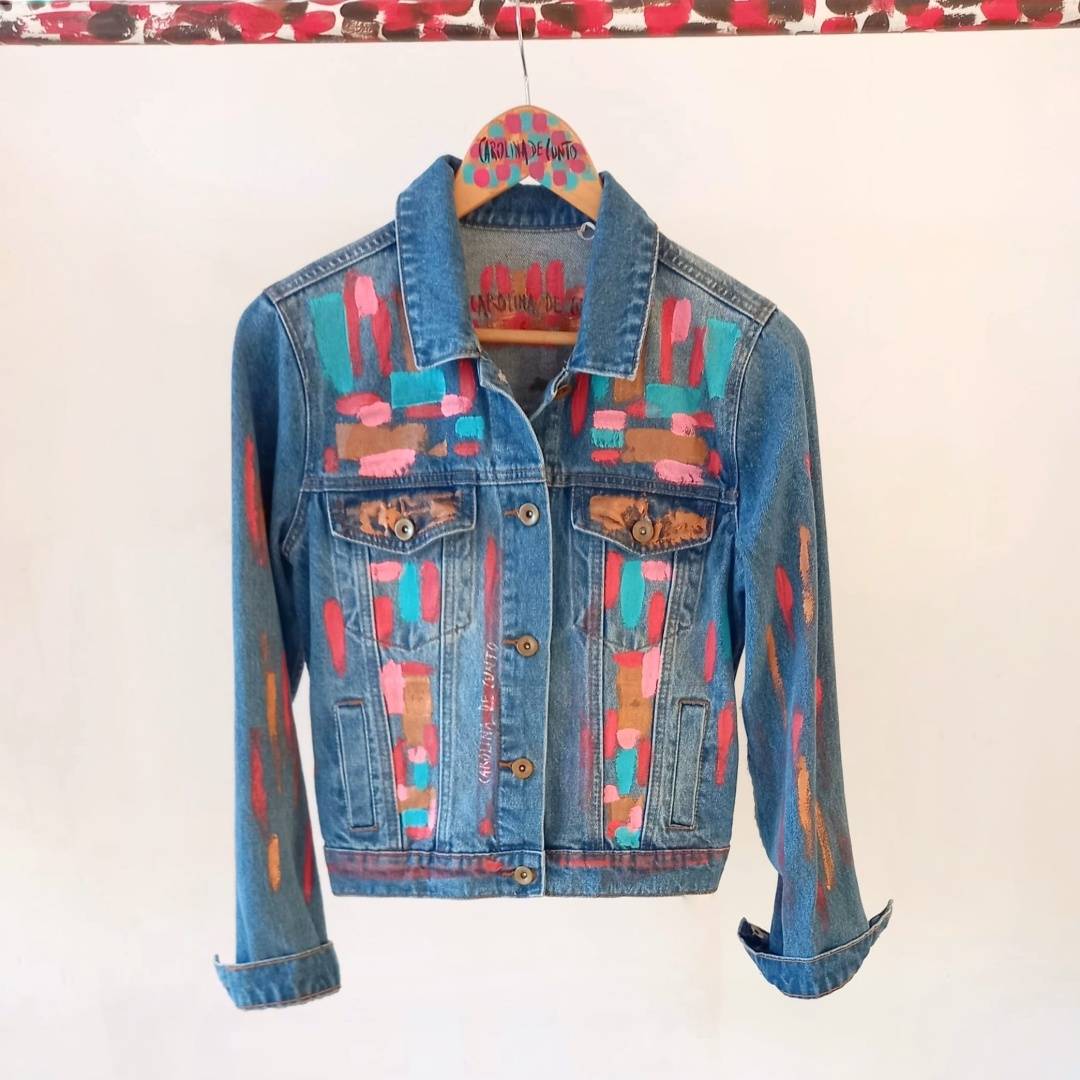 Arte para lucir. Campera de jeans con arte hecho a mano por Carolina De Cunto. Jovialidad y estilo en una prenda.
