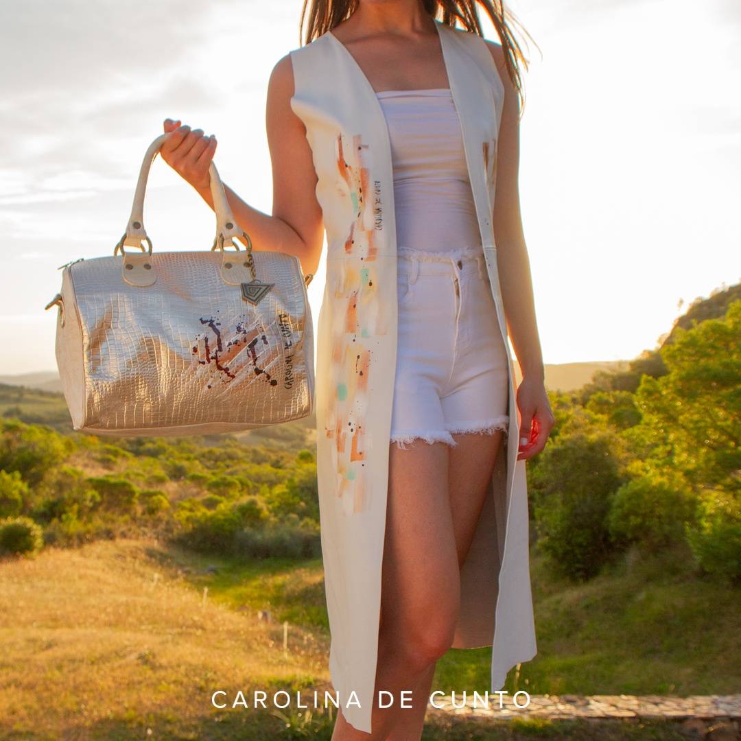 Arte para lucir. Chaleco de cuero en color blanco pintado a mano por Carolina de Cunto. Hecho a mano cuidando cada detalle, cueros uruguayos seleccionados de calidad superior.