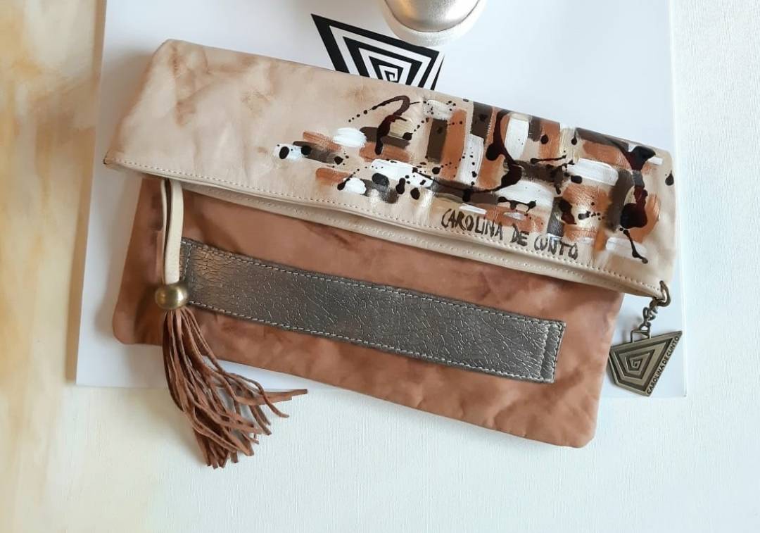 Elegante riñonera/sobre. Detalle de arte pintado a mano por Carolina.