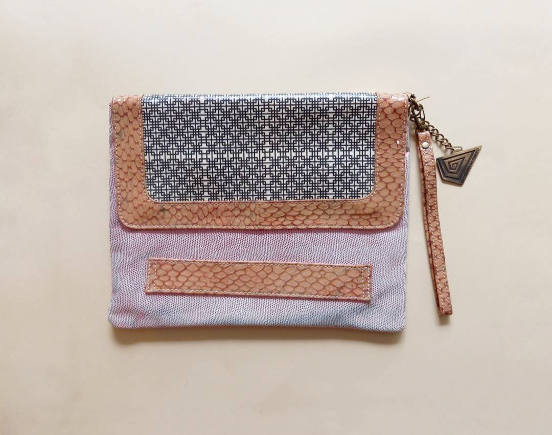 Elegante sobre de mano en cuero combinado con arte pintado a mano por Carolina.