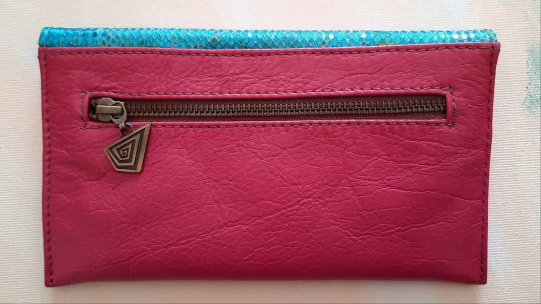 Elegante riñonera/sobre. Detalle de arte pintado a mano por Carolina.