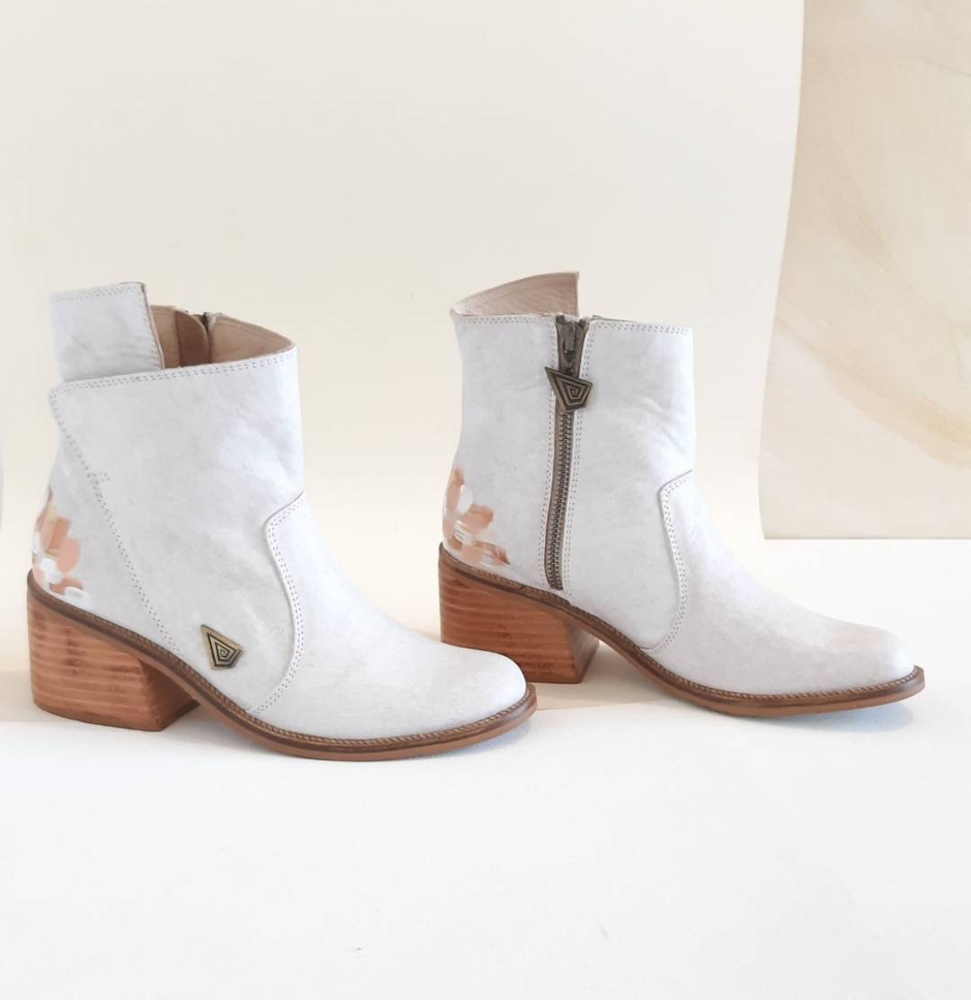 Leather boots made by hand, exclusive design, with combination of colors and textures. Elegant and trendy. Hand painted ART made by Carolina. Our Shoes are handmade by experts handcrafters, caring for every detail. We pick exclusive and unique leathers, hand painetd by Carolina.
