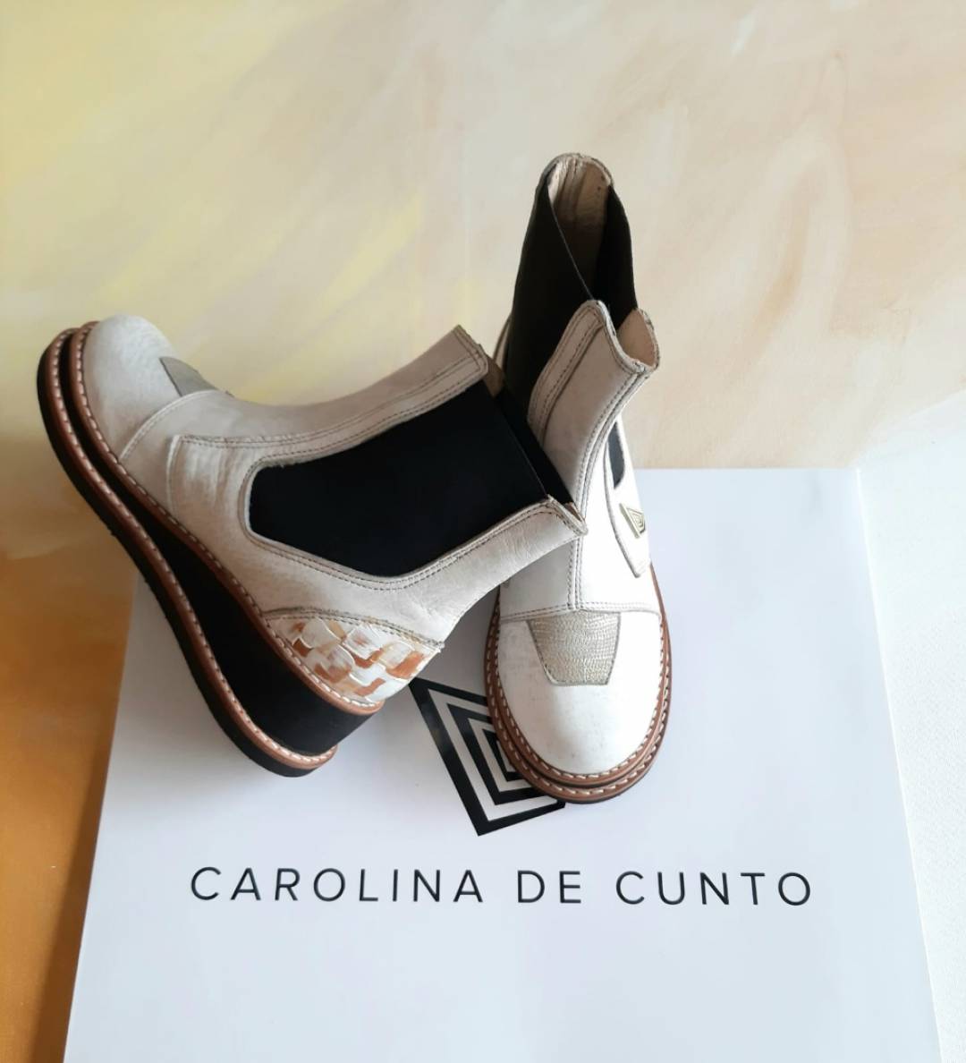 Leather boots made by hand, exclusive design, with combination of colors and textures. Elegant and trendy. Hand painted ART made by Carolina. Our Shoes are handmade by experts handcrafters, caring for every detail. We pick exclusive and unique leathers, hand painetd by Carolina.