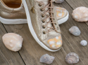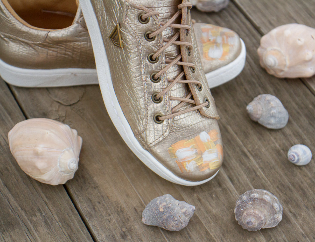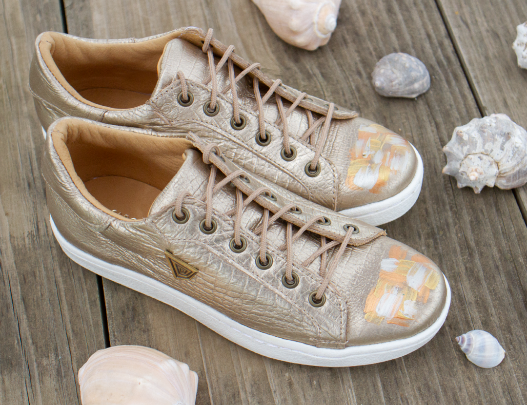 -Color: Gold textured leather sneakers. Art detail made by Carolina.