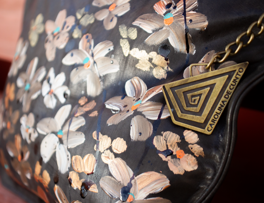 The Carolina De Cunto monogram in metal is our quality signature of a handmade bag made in Uruguay.