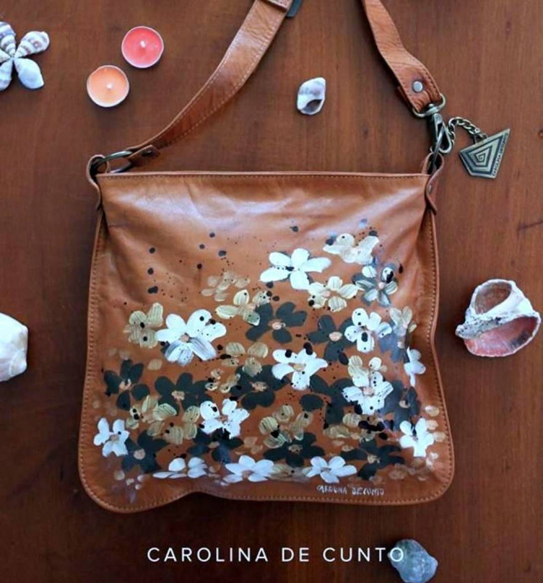 - Available color: Finished terracota color bag with tan patina leather, hand painted flowers made by Carolina.