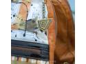 - Available color: Terracotta leather with tan patina. Beige and shine color leather. Art detail on front.