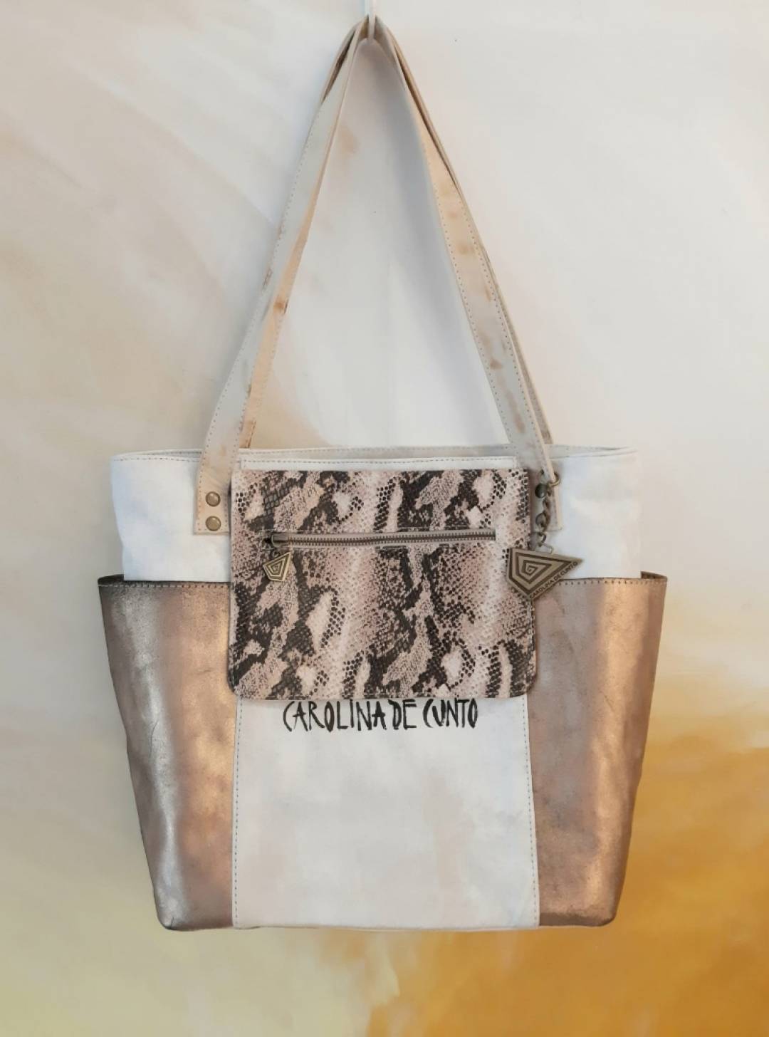 The Carolina De Cunto monogram in metal is our quality signature of a handmade bag Made in Uruguay.