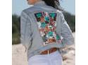 Art to wear. Jeans jacket with handmade art by Carolina De Cunto. Joviality and style in a garmet.