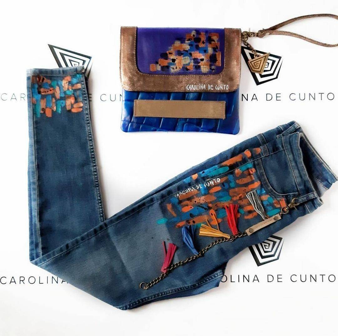 Arte para lucir. Jeans comodos y a la moda con arte pintado a mano por Carolina de Cunto para que resaltes en tu dia a dia.
