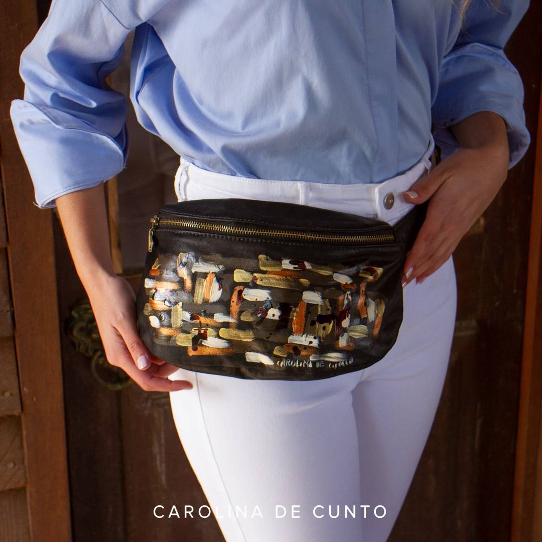 Elegante riñonera/sobre. Detalle de arte pintado a mano por Carolina.